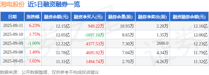 证券之星音讯,到2025年9月11日收盘,湘电股份(600416)报收于16.04元,上涨6.23%,换手率3.8%,成交量50.37万手,成交额7.93亿元。